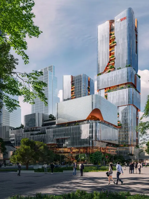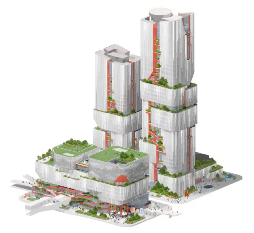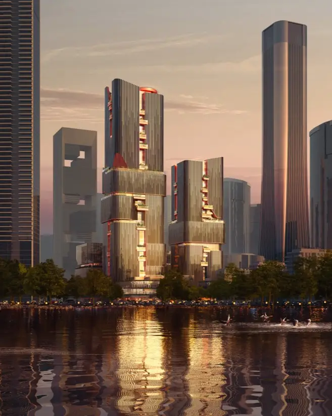 Los rascacielos de Scenic City llevan la firma de Büro Ole Scheeren. Es un estudio internacional conocido por convertir ideas arquitectónicas en gestos urbanos con identidad propia. Fundado en 2010 por el arquitecto alemán Ole Scheeren —exsocio de Rem Koolhaas en OMA—, el despacho ha consolidado una trayectoria de edificios escénicos que buscan dialogar con su entorno sin perder teatralidad. Desde la CCTV Tower en Pekín hasta el DUO complex en Singapur, su obra combina dramatismo formal, soluciones pasivas, y una lectura coreografiada del espacio público. Scenic City no es una excepción: arquitectura que no solo ocupa terreno, sino que intenta contar una historia… incluso si todavía no está claro el final.