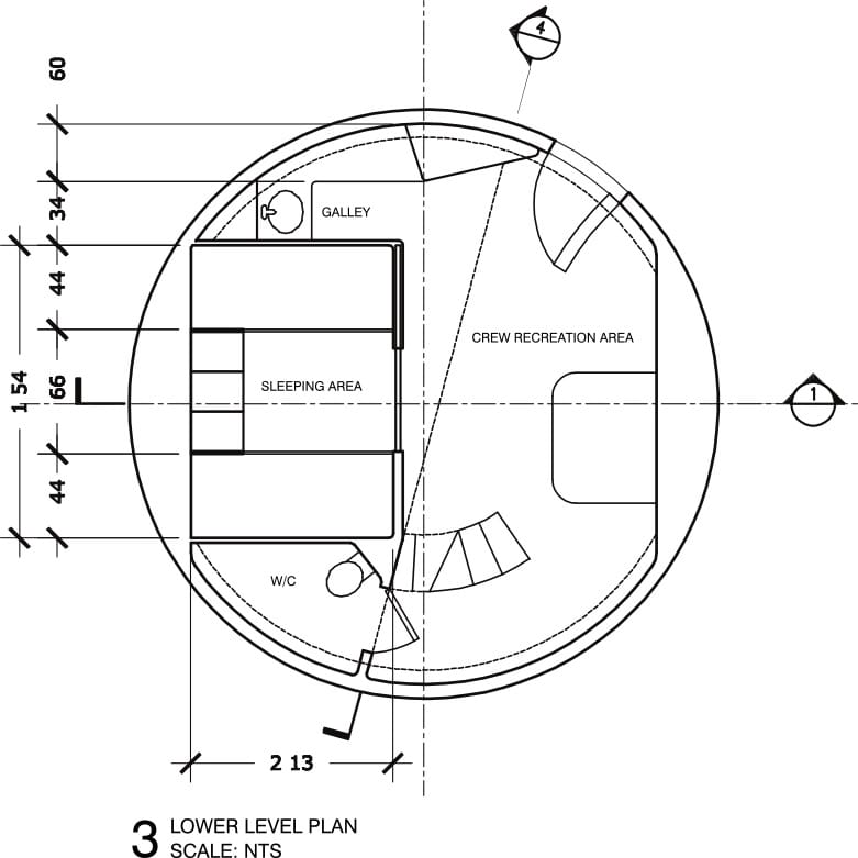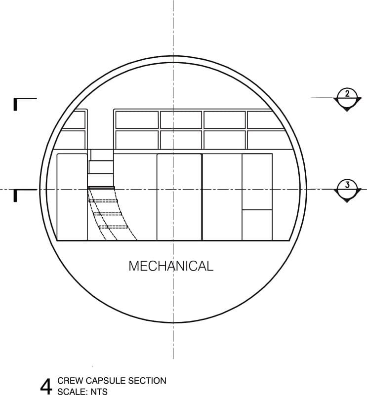 Esta cápsula esférica es habitable, y por tanto permanece siempre estable, a pesar de que el conjunto exterior ruede. Eso lo consigue con un conjunto de estabilizadores gymbals. Para salir del refugio, la tripulación desinfla y quita una sección.