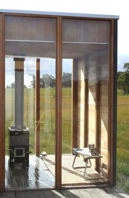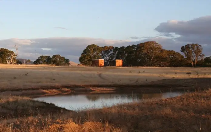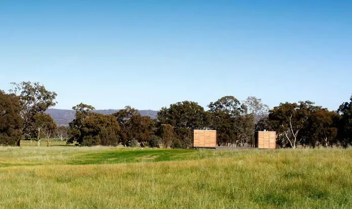 El refugio se extiende sobre 20 acres y está cerca de la majestuosa cordillera de los Grampians, ofreciendo una experiencia única de aislamiento y tranquilidad. Consta de dos estructuras: una dedicada a las funciones de vida y descanso, y la otra al cuidado personal y relajación. Ambas están unidas por una terraza que actúa como un espacio transicional y de contemplación.