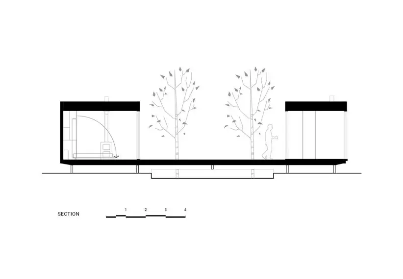 La sauna del Bath House es un espacio pensado para el relax y la introspección. Ofrece vistas del paisaje circundante a través de ventanas de altura completa, creando un diálogo constante con la naturaleza. Proporciona una experiencia sensorial intensa, ya sea en un ambiente caliente y humeante, o suavemente cálido y acogedor.