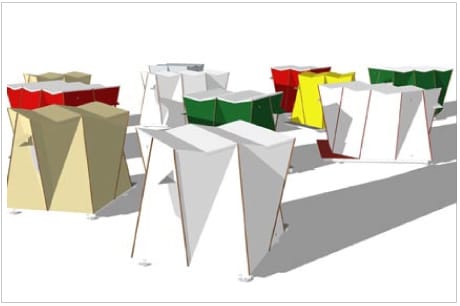 Fold Flat es una pequeña estructura con el aspecto de un cubo arrugado. Es un refugio de emergencia, pensado para dar cobijo a personas en situaciones límite, aunque también podría funcionar como tienda de campaña. El gran atractivo de este diseño radica en que se puede transportar en paquetes planos. Una vez en el sitio se monta con facilidad, gracias al diseño de los paneles que lo componen.