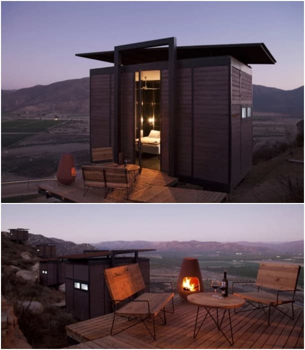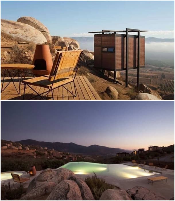 Estas imágenes corresponden a un hotel rural formado por una agrupación de 20 modernos refugios. Está situado en el Valle de Guadalupe (Baja California, México) sobre una extensión de 99 hectáreas, y dirigido por el Grupo Encuentro. Hay varios aspectos interesantes de este proyecto, pero tal vez el más importante sea el respeto a la naturaleza con el que se ha realizado su implantación. Están colocados de forma dispersa y sin alterar la topografía del lugar. Otras características son por ahora puro misterio, pero al menos indagaremos para averiguar cuan sostenibles son los refugios Encuentro en Valle Guadalupe.