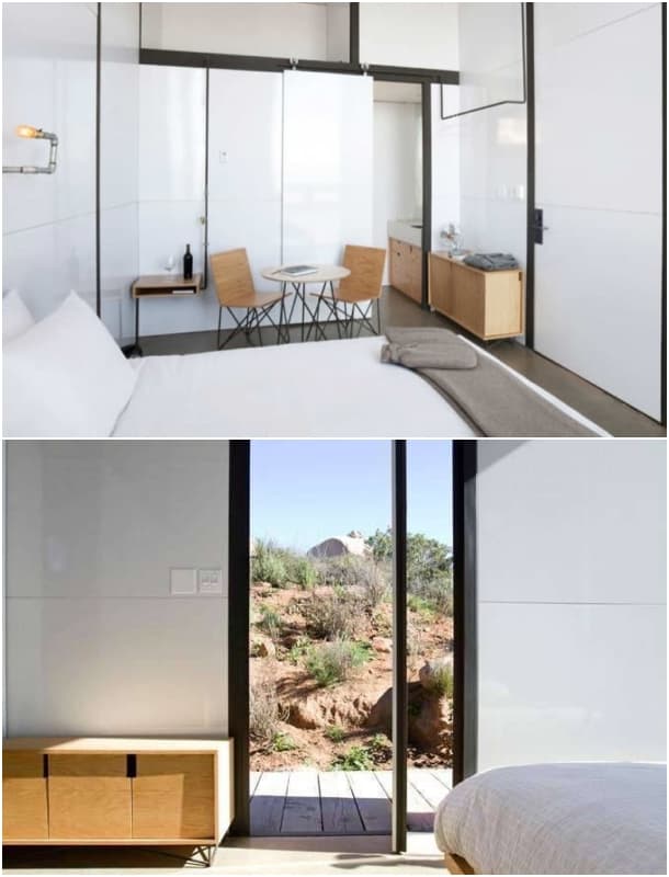 Desconocemos si el teléfono que se ve en la mesita de noche está ahí por pura decoración. En cualquier caso hay que decir que cada refugio está conectado a internet por WiFi. Ahora bien ¿qué pasa con las aguas residuales? ¿hay inodoro de compostaje? Se sabe que las habitaciones cuentan con instalación de aire acondicionado, pero tampoco se especifica de qué tipo es. ¿Se alimenta de energía renovable? tampoco se hace mención sobre ello.