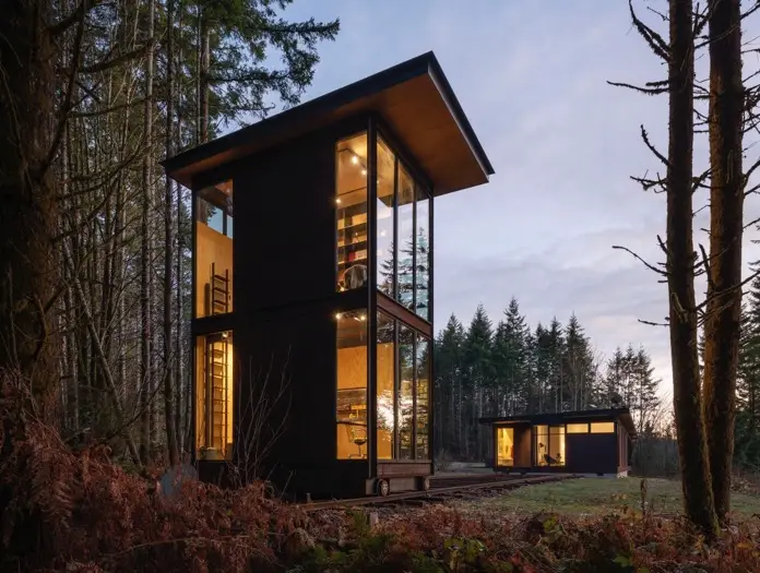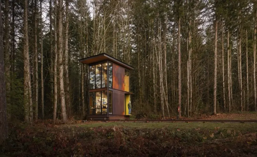 Este artículo analiza el proyecto Maxon Studio, diseñado por el renombrado estudio de arquitectura Olson Kundig. Se trata de un refugio que puede desplazarse sobre una vía de tren, junto a un bosque en las afueras de Seattle. El proyecto tiene dos pisos, y está concebido como una extensión de una casa existente. Ofrece un lugar de retiro y reflexión, mientras mantiene una conexión íntima con la naturaleza circundante. Su estructura de acero mantiene el lenguaje de la casa original, combinando diseño innovador con funcionalidad práctica.
