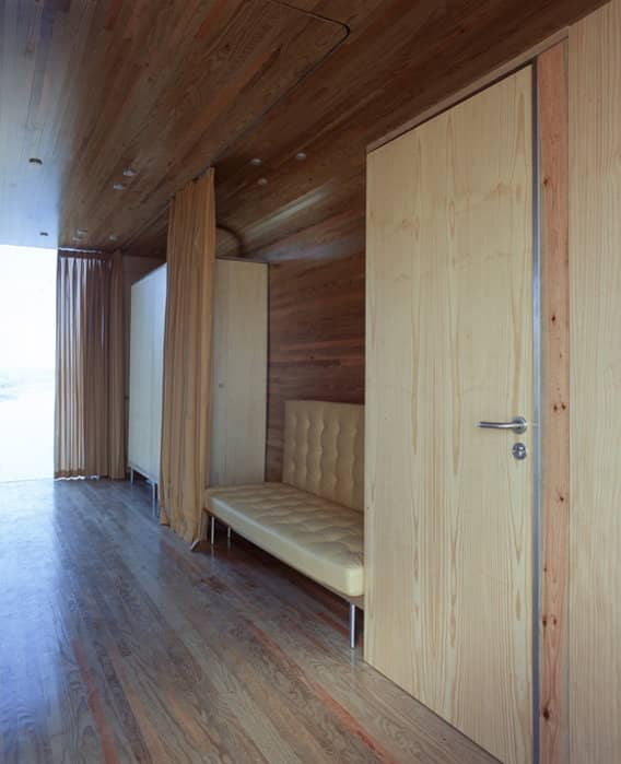 Cada unidad tiene unas dimensiones de 3 x 9 metros. Dentro de cada refugio hay un espacio multifuncional que, además de servir para dormir, dispone de una pequeña cocina y baño. El extremo frontal y posterior de su estructura tiene un gran hueco de suelo a techo. Probablemente lo más atractivo es que todo su acabado se ha realizado con madera.