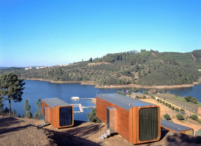 Los Pods DST de Aldeia do Mato funcionan como alojamiento moderno para los visitantes que quieren disfrutar de la naturaleza. El lugar está próximo al río Tajo, rodeado de pinares, en el embalse de Castelo do Bode. Cada uno de estos pods fue fabricado en taller, y traslado al sitio en camión y helicóptero. El refugio está apoyado sobre una estructura metálica, de tal manera que la alteración del terreno es mínima.