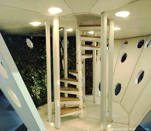Por una escalera de caracol que discurre por el eje del refugio, se accede a cada una de sus plantas. Todas están resueltas como habitaciones de barco, aprovechando al máximo el espacio, y adosando a la pared exterior la mayoría del mobiliario.