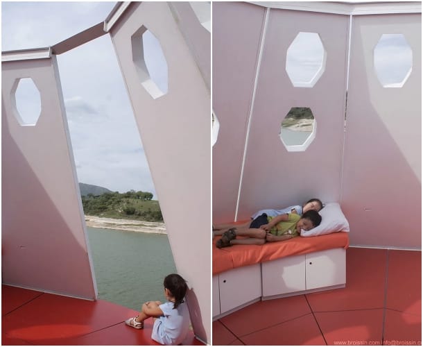 Como se puede comprobar, la confortabilidad de este refugio prefabricado es bastante limitada. Los huecos del prototipo no tienen vidrio, tampoco hay cubierta, y las uniones entre paneles no son estancas.