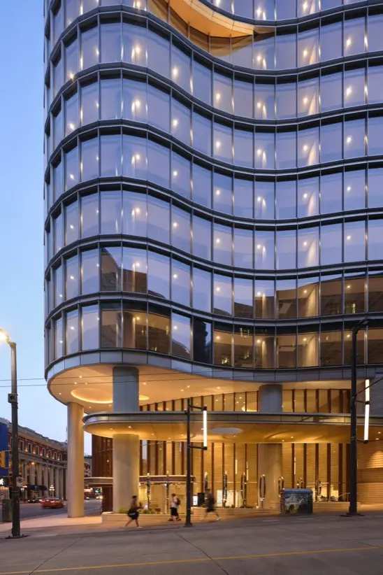 A pesar de las restricciones de la ciudad para preservar las líneas de visión, KPF diseñó la torre para maximizar su altura visual desde ciertos ángulos. «La forma curva y los parapetos ondulados dan la impresión de agua, reflejando la luz de manera que descompone visualmente la escala de la torre«, añadió Von Klemperer. Desde ángulos oblicuos, el edificio parece formado por torretas agrupadas, acentuando las proporciones verticales y creando un efecto visual distintivo.