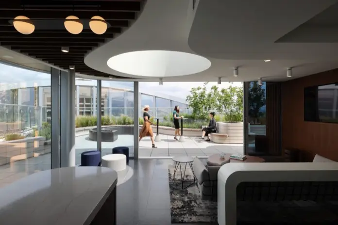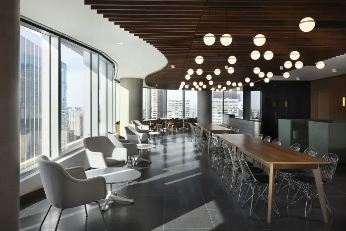 Los interiores del 320 Granville son un reflejo del minimalismo moderno. Sus acabados incluyen suelos de piedra y listones de madera en los techos de los espacios públicos. El edificio también está equipado con comodidades modernas, incluyendo espacios para bicicletas y una terraza en la azotea. En líneas generales, esta torre proporciona un oasis urbano para los ocupantes y visitantes.