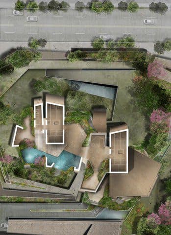 El proyecto de esta torre residencial de lujo se corresponde con el edificio Agora Garden de Fernando Menis. Surgió a partir de una invitación que recibió el arquitecto para un concurso de ideas, promovido por un cliente privado. El proyecto se ubica en una barriada de bloques de pisos del distrito Xinjin de Taipéi (Taiwán). No ganó la competición, pero sí llamó la atención de los medios especializados.