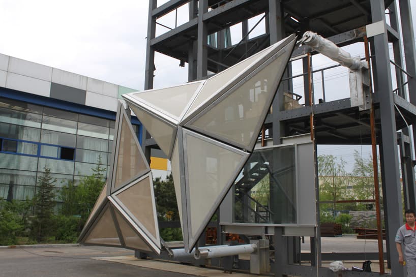 Al ser una fachada inteligente, su control está informatizado, por eso su respuesta es suave y silenciosa. Esto es debido a un sistema hidráulico que hace que los paneles triangulares fijados a él puedan moverse, casi de la misma manera que lo hace una sombrilla, como bien se puede apreciar en el vídeo.