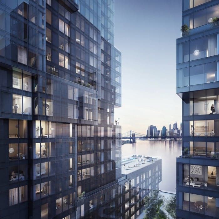 Nos gustó mucho la imagen exterior de las torres de apartamentos 416-420 Kent. Es un desarrollo para una gran parcela del barrio Williamsburg (Brooklyn, Nueva York). El proyecto recibió el nombre de 416-420 Kent Avenue, y surgió con el objetivo de renovar la orilla del East River de Manhattan.