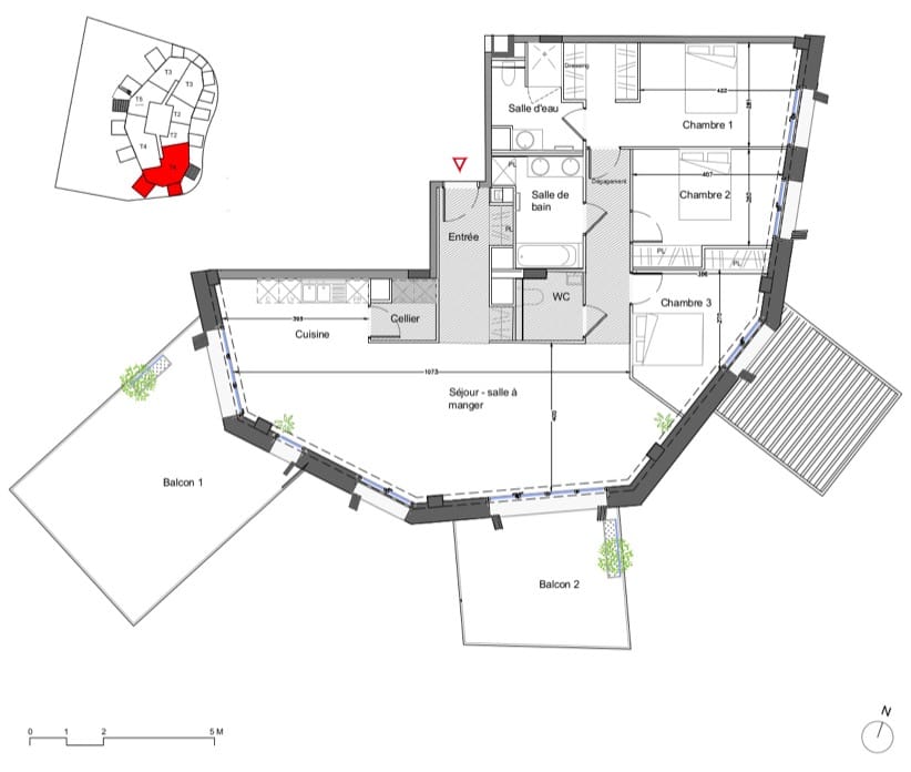 La torre se “alimenta” como un árbol, de los recursos naturales que están disponibles a nivel local. Eso reduce su huella de carbono, pero también incorpora en estrategias pasivas que no interfieren la comodidad y el uso. Un ejemplo de ellas es la posibilidad de enfriar los apartamentos mediante chimeneas solares.
