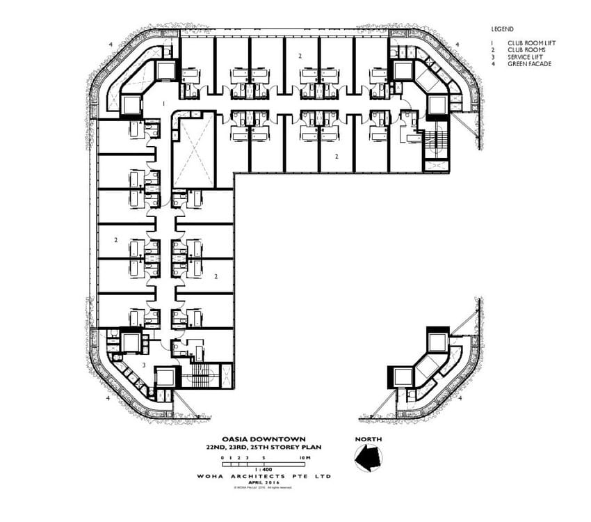 El objetivo principal con el proyecto para el Oasia Hotel Singapur fue crear una torre alternativa al típico edificio en altura. En su estructura se combinan formas innovadoras que intensifican el uso del terreno, dándole un enfoque tropical. El resultado final es el de una torre verde perforada, en el corazón del distrito de negocios de Singapur.