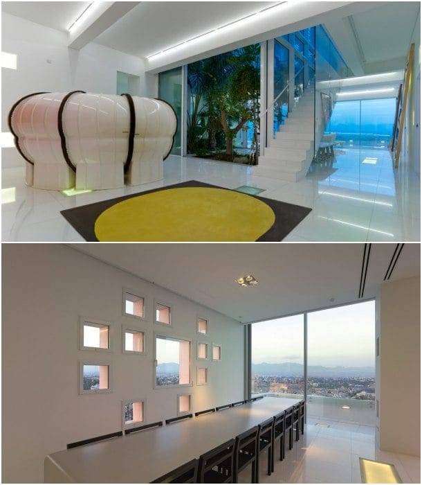 Las dos últimas plantas de la torre White Walls están destinadas a un apartamento dúplex. Esta vivienda se organiza alrededor de un patio central, según la arquitectura tradicional chipriota. En la parte superior, hay tres grandes pérgolas de tubos que protegen a esta vivienda del sol del verano.