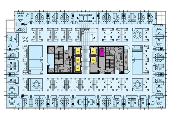 Su diseño pretende atraer a grandes empresas, con espacios de oficina de primera clase. Por eso cuenta con la última tecnología y comodidades. Las oficinas están casi libres de soportes, y poseen fachada de vidrio de suelo a techo.