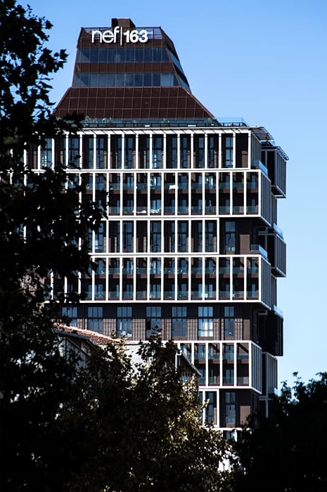 Este proyecto llegó a ser finalista en el World Architecture Festival 1 (WAF), dentro de la categoría de futuros proyectos residenciales. Está inspirado en la ciudad de Estambul, y en el trajín diario de sus jóvenes profesionales. En cierta medida la torre residencial NEF Flats 163 hay que considerarla como un nuevo concepto de estilo de vida.