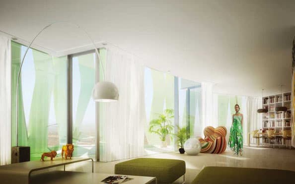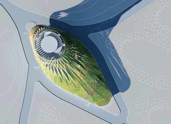 Preside el proyecto (en un extremo) una torre mixta de 96 metros de altura. El resto es edificación de poca altura, que está ordenada siguiendo una geometría bastante orgánica. Esta implantación se inspira en la cola de un pavo real. La torre Tena está recubierta por una malla de paneles metálicos que filtran la luz directa del sol. Esto hace que funcione como una gran celosía, pero también permite el uso de terrazas y espacios abiertos. En las villas de este resort también encontramos espacios protegidos del sol, y que permiten el disfrute al aire libre.