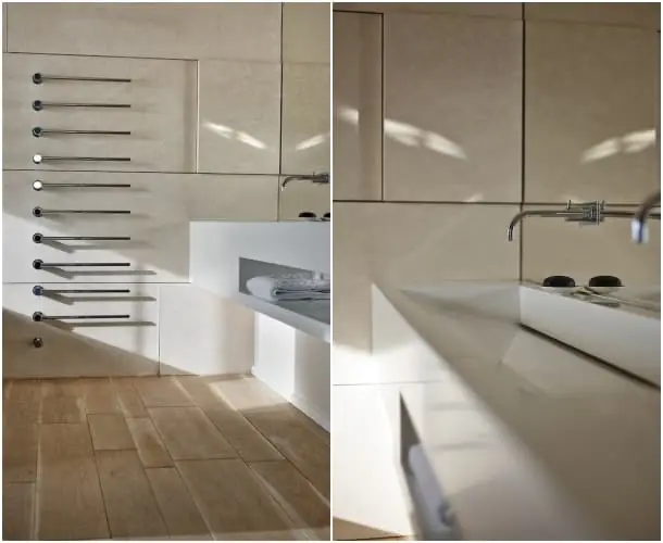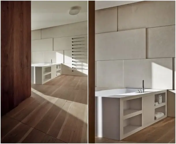 Lo que realmente distingue al apartamento Riverpark es su enfoque innovador en los materiales y texturas. Las paredes, adornadas con revestimientos de piezas no coplanarias, crean un efecto visual intrigante que invita al tacto y la contemplación. El piso de madera, extendido por todo el apartamento, sirve como el cálido abrazo que une los diversos espacios. Proporciona una base de naturalidad sobre la cual se asienta el mobiliario de líneas puras y rectas.