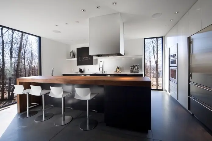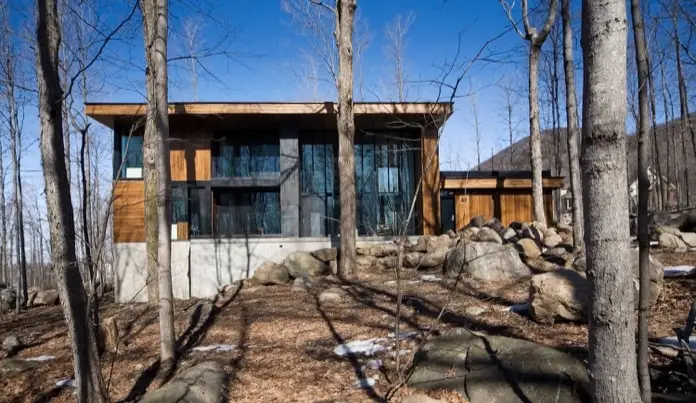 En este artículo trataremos la decoración de una casa próxima a la ciudad de Mont Saint-Hilaire, en el suroeste de Quebec. Allí hay una colina con el mismo nombre, de 414 metros de altitud, y en la ladera se ubica dicha vivienda. Esta casa captura la belleza natural de su entorno, y además representa un testimonio del ingenio arquitectónico y decorativo. El proyecto destaca por una integración fluida de diseño contemporáneo y comodidad. Es interesante el uso que hace de materiales naturales y esquemas de color que reflejan el paisaje exterior.