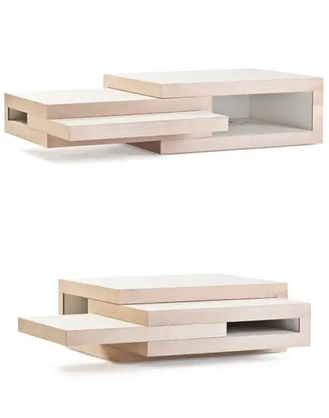 La mesa REK está compuesta por tres partes que encajan perfectamente. En su forma más compacta, presenta un diseño simple y minimalista, llegando a medir 72 x 72 x 33cm. Sin embargo, su verdadera magia reside en su capacidad para expandirse. Las piezas pueden extenderse en dos direcciones, permitiendo adaptar su tamaño según las necesidades del momento, manteniendo siempre la estabilidad.