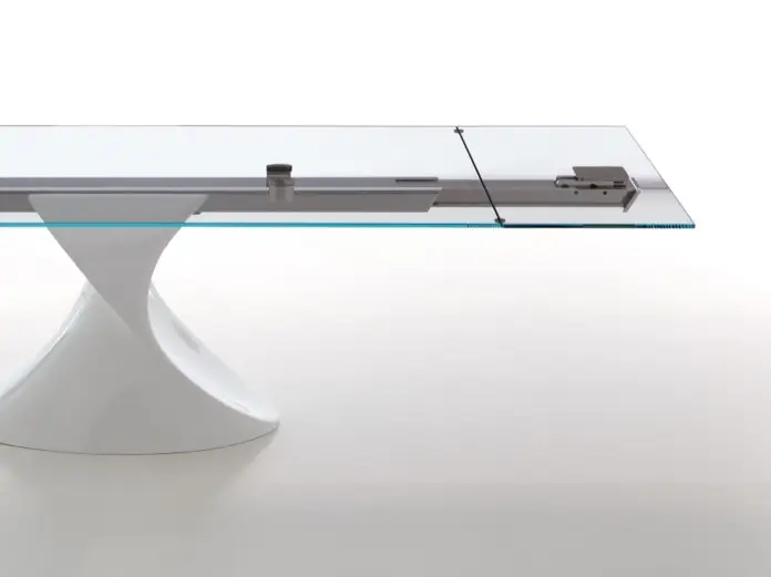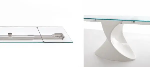 A diferencia de las convencionales mesas extensibles, la mesa Shanghai introduce el vidrio templado como material principal para el tablero. Es una elección que no solo mejora su apariencia estética sino que también asegura una mayor durabilidad y resistencia. Este detalle es el que distingue a la mesa Shanghai dentro del panorama del diseño de mobiliario. Ofrece una solución elegante y contemporánea para las necesidades de espacio adaptable.